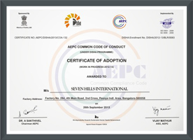 Our facilities are also AEPC Certified under the Disha Programme by the Government of India, vouching for our compliance to social and industrial environments.